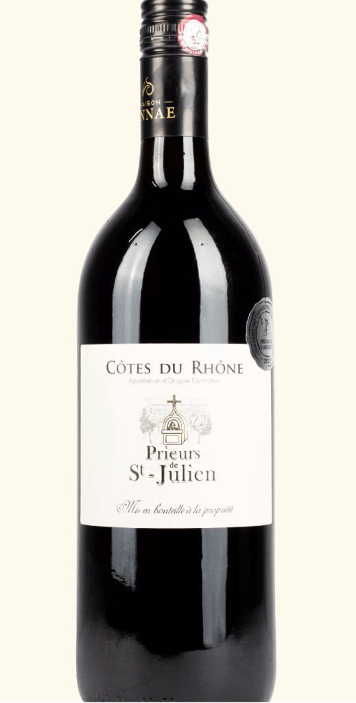 Der Prieurs de Saint‑Julien Côtes du Rhône Rouge präsentiert sich als vollfruchtiger, charaktervoller Rotwein aus dem südlichen Rhône-Tal. Die klassische Cuvée mit typisch würzigem Profil bietet eleganten Trinkgenuss – perfekt für den täglichen Rotweinmoment mit guter Substanz.